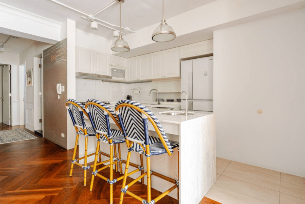 Step into this Parisan chic apartment and feels instantly at home. This is a 1000 sqft, 3 beds and 2 baths chic apartment with herringbone wood floor and marble middle island. It is thoughtfully designed to ensure elegance, comfort, and convenience. Master bedroom has a king size bed and ample closet space. Master bathroom has shower and bathtub. Second bedroom has bunk bed and a desk. Third bedroom has a single pull out bed and a desk. Guest bathroom has shower area. With an elevator and garbage service, this abode is a stone’s throw away from Da’an Park (Central Park of Taipei), Jiangkuo Weekend Flower Market, and the original Din Tai Fung. Da’an Park MRT station and supermarket are 1 min’s walk.