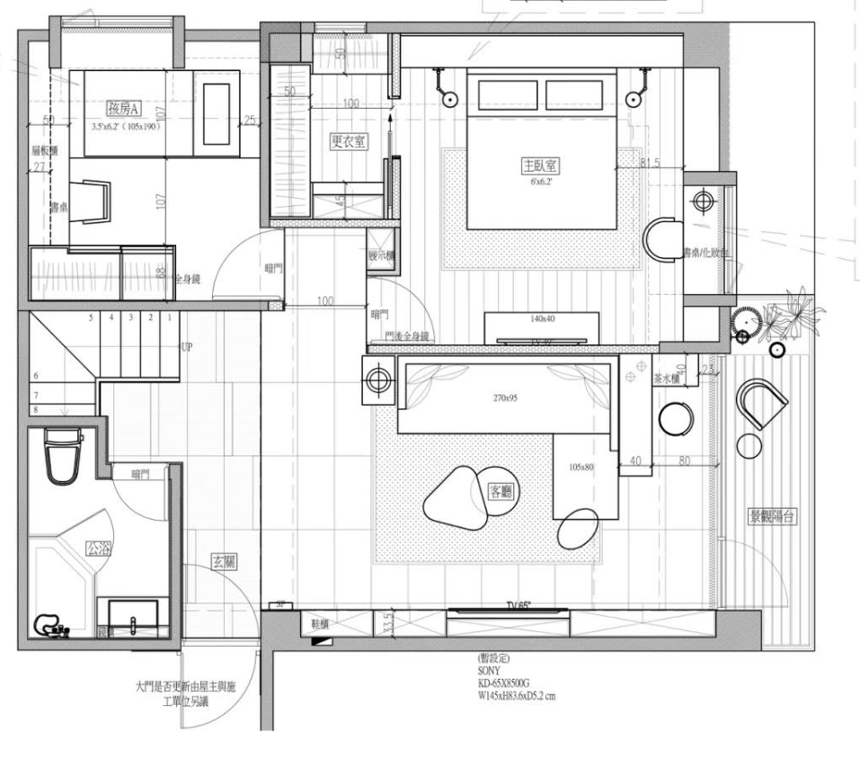 Rare penthouse unit in Taipei City center with clear 101 views. It sits on the top floor of an elevatored building with guard and trash service, 1,245 sqft, 3 bed/2 bath. The master bed has a king bed, a walk-in closet. The second room has a single bed and wardrobe. Third bed has a single bed and desk space. Fully equipped kitchen with dishwasher and dining area sits on upper floor. The rooftop opens to the laundry area with Maytag washer and dryer, and outdoor space with 101 view.